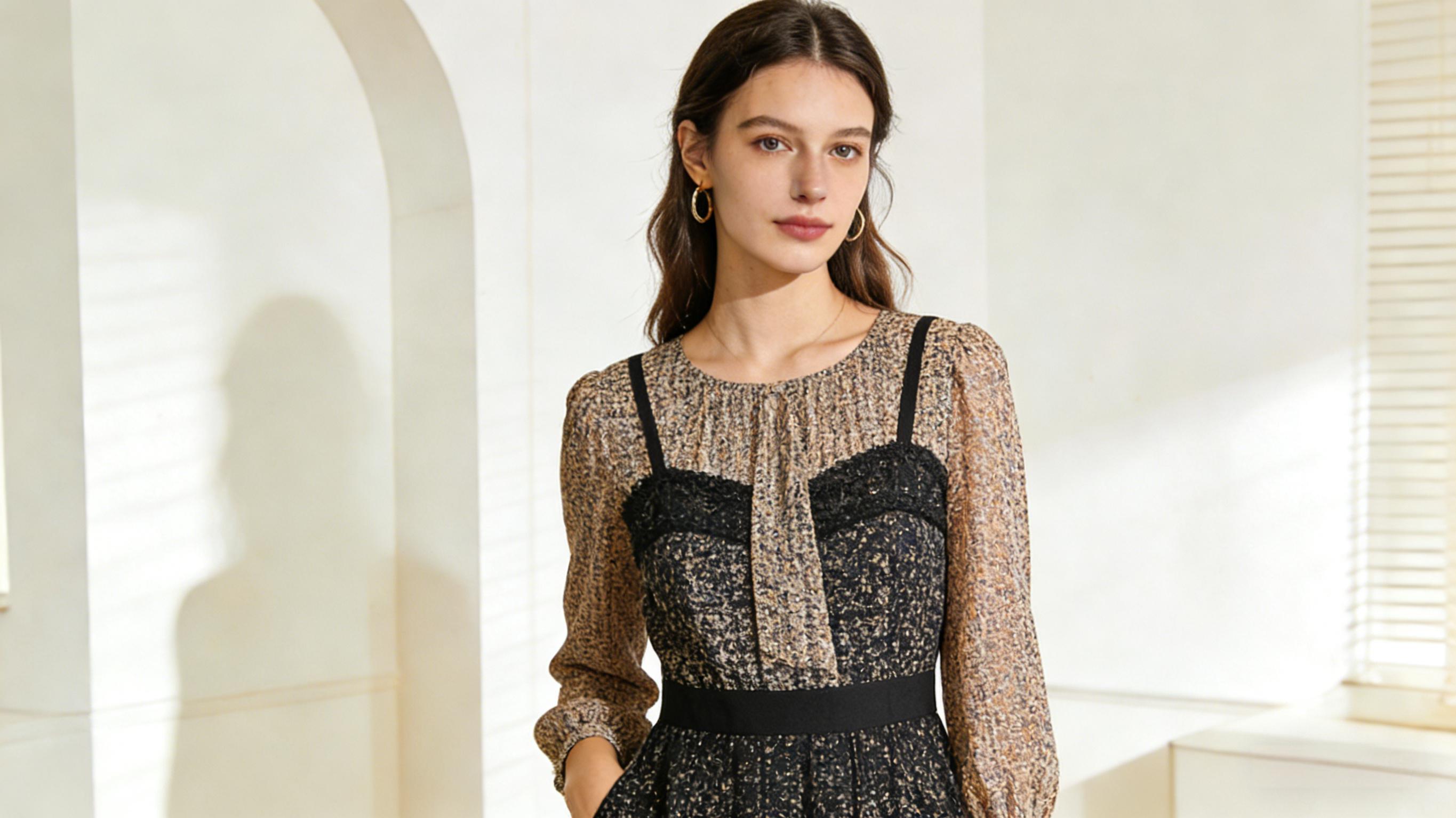 LEIN コットンシルクリーフプリントワンピース